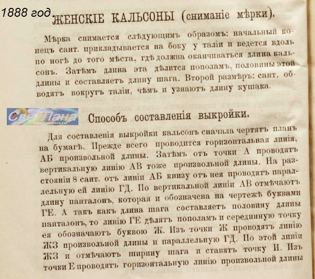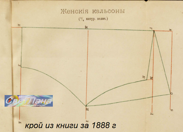 КРОЙ женских панталон/кальсон из книги 1888 года